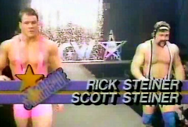 Event: WCW Starrcade 1990 This is the final match of the Pat O'Connor Memorial International Cup Tag Team Tournament. Scott and Muta start things off. Tie-up, kick to the stomach by Muta and he delivers an enzigieri. Muta picks up Scott, Irish whip, reversed, Scott goes for a kick, Muta catches it, but Scott rolls him up and applies a single leg crab hold. Muta makes it to the ropes to break the hold, and both men return to their feet. Tie-up, Scott grabs Muta's arm and tags in Rick. Kick to the stomach by Muta and he delivers a spinning back kick to Rick. Rick ducks a second kick however and hits a lariat. Muta tags in Saito, tie-up, club to the back by Saito and he punches Rick down to the mat. Saito keeps clubbing on Rick, Irish whip, and Rick nails a dropkick. Irish whip by Rick and he nails a Steinerline. Muta goes to up but Rick shakes the ropes, making Muta crotch himself on the top rope. Saito recovers and bows to Rick, but Rick kicks him in the head. Rick tags in Scott, so Saito tags in Muta. Muta and Scott tie-up, Muta pushes Scott into the corner and hits a series of shoulder tackles. Irish whip by Muta and he delivers the Space Flying Elbow. Muta picks up Scott, Irish whip, but Scott kicks him back and hits a belly to belly suplex. Muta tags in Saito, tie-up, and Saito punches Scott against the ropes. Chops by Saito but Scott returns with punches, Irish whip, and Scott hits a back elbow. Scott tags in Rick, punches by Rick but Saito hits a back suplex. Side headlock by Saito, Rick Irish whips out of it and the two collide, falling to the mat. Saito tags in Muta, snapmare by Muta to Rick and he delivers a Flashing Elbow. Muta throws Rick out of the ring, and Saito throws Rick into the ring post. Muta goes outside, he gets the ring bell and clocks Rick with it in the head. Still outside the ring, Saito throws Rick to Muta, and Muta floors Rick with a lariat. Muta brings Rick back into the ring and he tags in Saito. Saito clubs Rick in the ribs and then blatantly chokes him. Scott complains, referee yells at him so the choking continues. Muta comes in the ring off the top rope and elbows Rick in the head, while the referee is fussing at Scott. Saito tags in Muta and Muta kicks Rick in the ribs. Irish whip by Muta but Rick ducks a kick and delivers the Steinerline. Rick makes the hot tag, Irish whip by Scott to Muta and he hits a back bodydrop. Tiger Bomb by Scott to Muta, cover, but Saito breaks it up. Muta chokes Scott with his knee and tags in Saito. Irish whip by Saito and he knocks down Scott with an elbow strike. Saito Suplex by Saito, cover, but Rick breaks it up. Saito picks up Scott, with with Muta they drop Scott with a spike piledriver. Saito clubs on Scott and throws him into the turnbuckle. Irish whip by Saito, but Rick makes a blind tag to Scott when he bounces off the ropes that Saito does not see. Saito applies a sleeperhold to Scott, but Rick comes off the top turnbuckle with a sunset flip to pick up the three count! Your match and tournament winners: The Steiner Brothers Match Thoughts: Considering it was obvious the Americans were going to win an International Tournament in America, it was a very solid and well laid out match. It was a bit short since it was both pairs third match of the night, but it got enough time to tell the story they were telling, which was the Japanese team was badass but too cocky for their own good. The beat down offense all looked good (I miss spike piledrivers), and the crowd really got into it during the brief Steiner comebacks. It won't go down as a classic due to the circumstances of the match, but the action itself was entertaining bell to bell. Score: 7.5 |