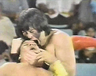 Event: WWC They circle each other to start, tie-up, side headlock by Vikingo, Black Ninja Irish whips out of it but Vikingo shoulderblocks him down. Black Ninja returns the favor, but Vikingo hits a hiptoss followed by a dropkick. Another dropkick by Vikingo but Black Ninja kicks Vikingo in the stomach. Black Ninja chokes Vikingo over the top rope and throws Vikingo into the corner. Snapmare by Black Ninja and he delivers an elbow drop. Black Ninja rakes Vikingo's eyes with his boot and hits a vertical suplex. Cover, but it gets a two count. Eye rake by Black Ninja and he bites Vikingo in the head. Punches by Black Ninja but Vikingo throws Black Ninja into the corner. Irish whip by Vikingo and he hits a back bodydrop. Elbow drop by Vikingo, cover, but it gets a two count. Scoop slam by Vikingo and he applies a reverse chinlock. Black Ninja bites Vikingo's fingers to get out of it, rib breaker by Black Ninja and he nails a moonsault. Cover, and he picks up the three count. Your winner: Super Black Ninja Match Thoughts: Better then the last match, as they kept it to the point and didn't waste any time since it was such a short match anyway. The head biting was pretty epic, but the rest was just standard Super Black Ninja. Vikingo never had much of a shot as Mutoh was clearly still working his way up to the better wrestlers in WWC. Score: 4.5